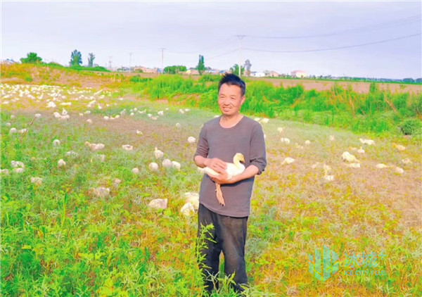 今年,王震不但抓了5000只鹅雏,还养了1000只鸭子、500只溜达鸡。开春时就忙着修缮鹅棚,筑牢鸭舍,幼雏到家后,他像照看孩子一样,悉心照料。王震夫妇不但精心准备一日三餐,还按时赶着“鹅士兵”去吃青草,喝泉水。他们的养殖场专门安装了音响设备,每天会定时播放音乐。“听说这样能让白鹅心情愉悦,长得更快,管不管用我不知道,但我的鹅一点不怕人,听到响动也不受惊扰。”王震说。