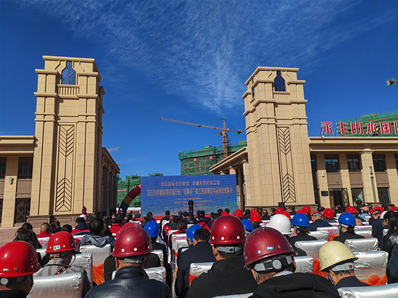 当日的观摩活动选择在鹤岗市本土开发企业永丰集团开发的永丰国际二期山水国际项目工地开展。永丰房地产开发集团负责人沙伸厚介绍,作为鹤岗市高端楼盘代表,该项目均价超过5000元/平方米,8月6日开盘至今,去化已超过50%。与会人员先后参观了工程实体质量、样板间、安全防护设施、数字工地等内容。