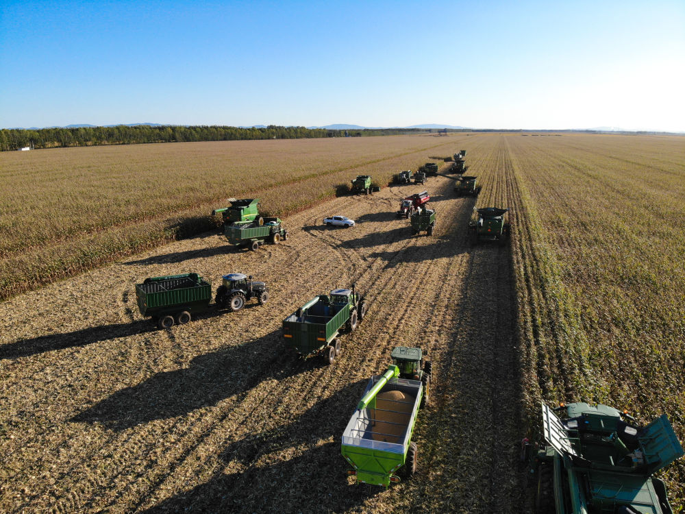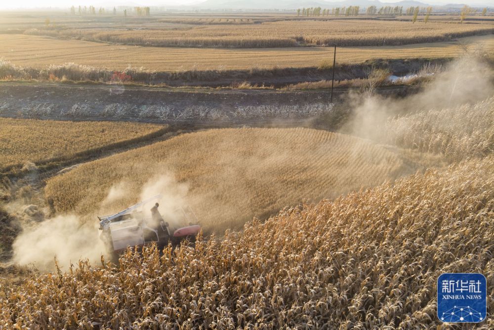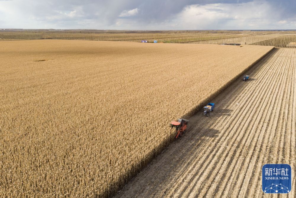 北大荒集团建设农场有限公司玉米收获现场。新华社发(许颖献摄)