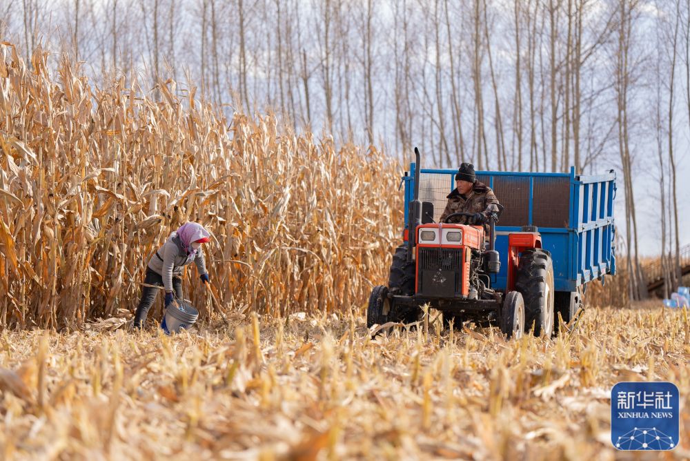 10月19日,在黑龙江省肇东市五里明镇东升村,农民在运输刚收获的玉米。新华社记者 谢剑飞 摄
