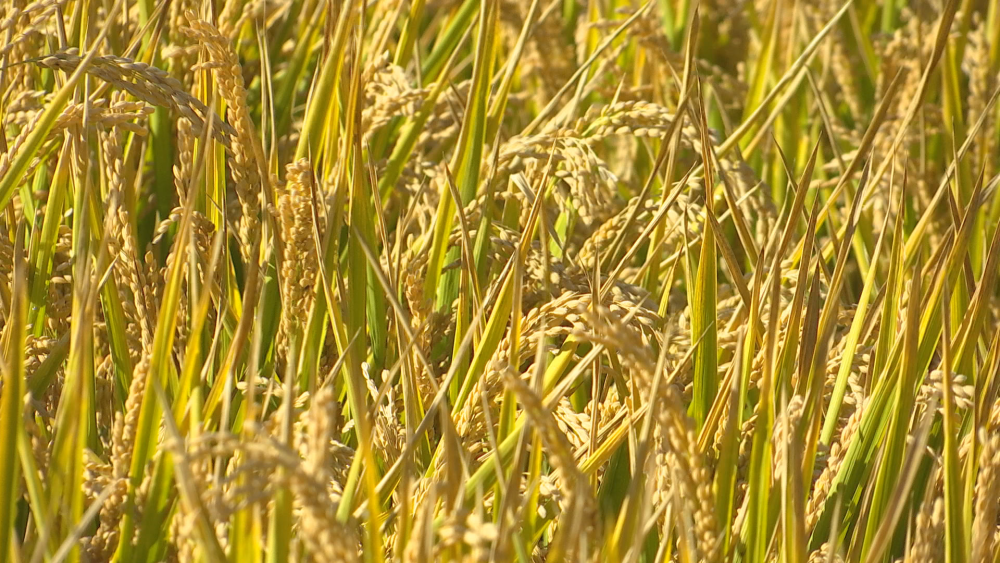 眼下,正值秋收时节,河南省南阳市桐柏县10万亩生态水稻喜获丰收。稻田里谷物金黄,簇簇颗粒饱满的稻穗压弯了稻秆,农户们在田间忙着收获一年中最美的“丰”景。