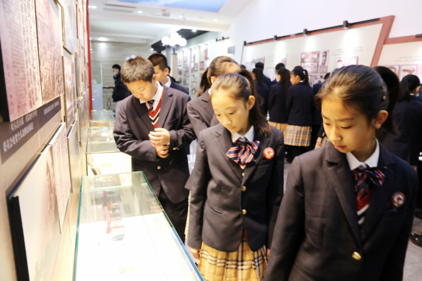 图为哈尔滨松雷中学学生参观哈尔滨党史纪念馆