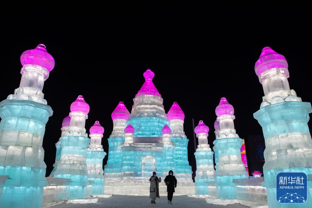 2021年12月31日,哈尔滨冰雪大世界主塔“圣火之巅”。新华社记者谢剑飞摄