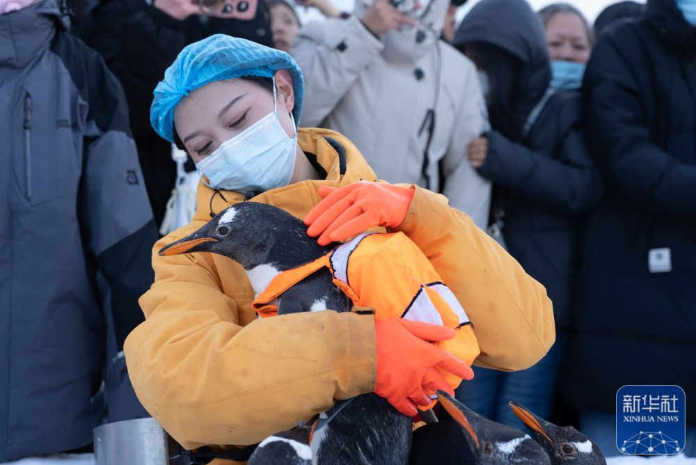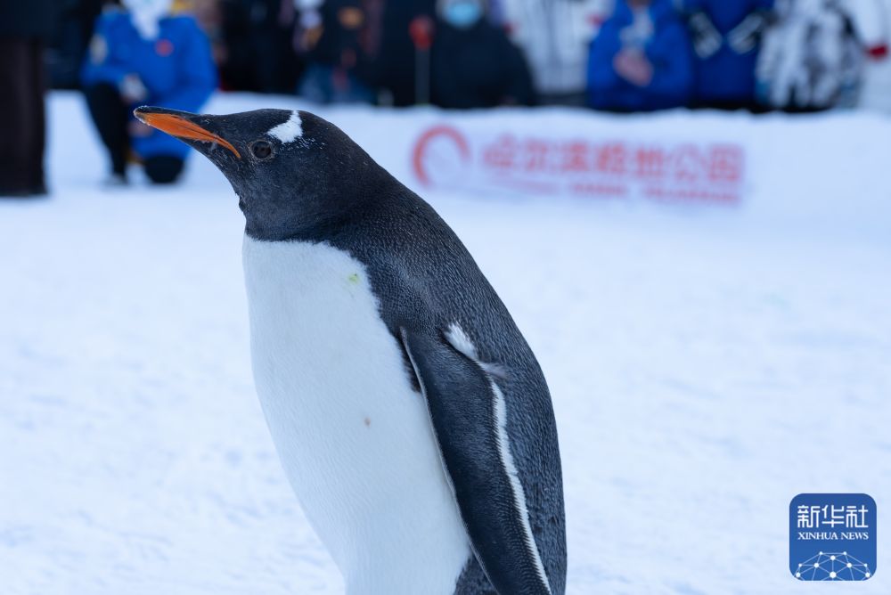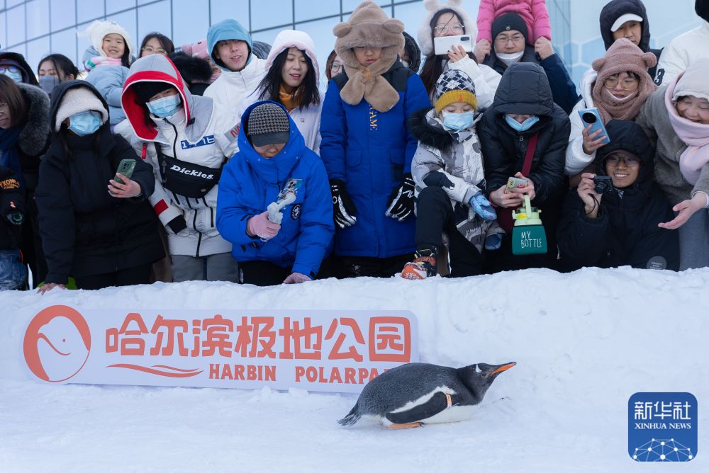 时值周末,哈尔滨极地公园的企鹅亮相户外,上演冰雪巡游,吸引许多游客前来观赏。目前正是黑龙江省哈尔滨市的冰雪旅游季。