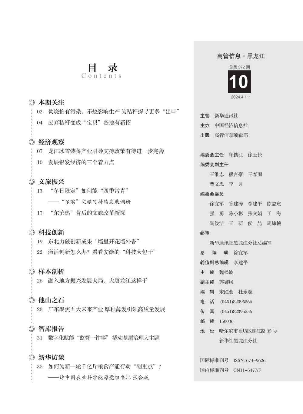 2024年3月,《高管信息·黑龙江》全面改版升级,栏目设计、稿件内容更加突出思想性、参考性和前瞻性,着力打造为龙江高质量发展、可持续振兴提供智库赋能的高端平台。