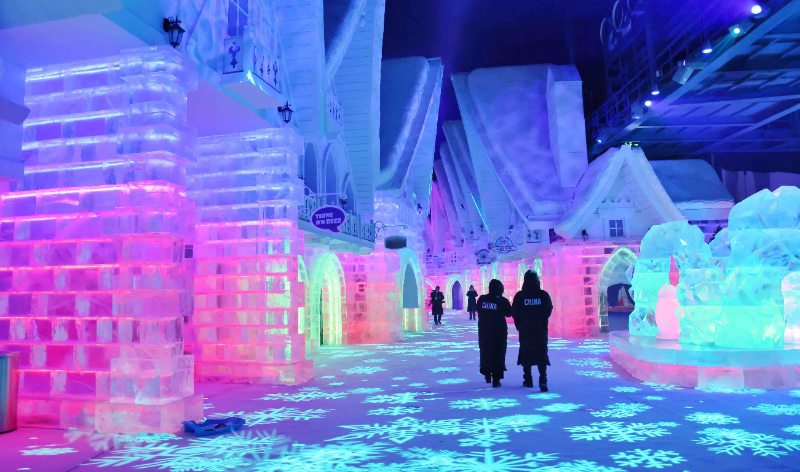 色彩炫丽的“冰淇淋”,颜色造型各异的“蔬果”……漫步冰雪小世界,仿若置身童话世界,随处可见的彩冰装饰和景观小品,让人忍不住想伸手去触摸,甚至去“品尝”。