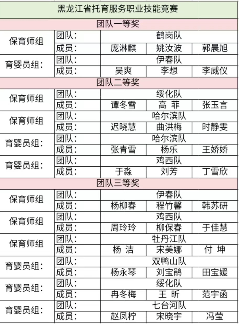 经过评选,一批技术精湛、业务过硬的优秀托育选手脱颖而出。分别决出了团体一、二、三等奖和优秀奖,以及优秀组织奖、特别贡献奖等奖项。