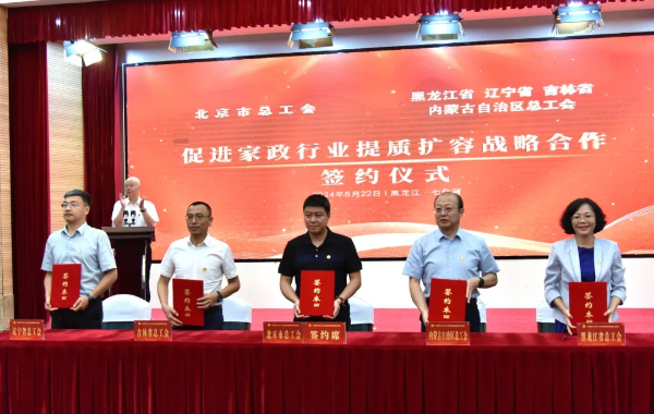 东北三省一区总工会与北京市、上海市总工会签订了家政行业合作框架协议,建立“省统筹指导、市(地)落实”劳务协作框架,通过工会搭建平台,常态化组织东北地区家政行业务工人员到北京、上海等地就业,并在薪酬待遇、劳动权益等方面完善保障机制,促进外出务工就业人员顺利、稳定、高质量地充分就业。