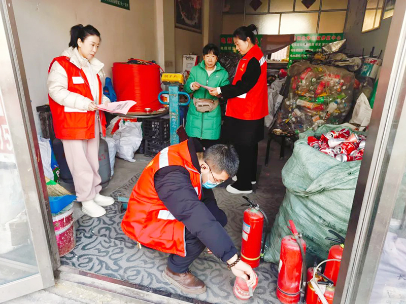 在先锋街道曙光社区,网格员深入商铺对灭火器进行检查,同时向商铺及居民发放宣传单,普及火灾预防措施,如定期检查电气设备、不乱扔烟蒂、保持消防通道畅通等,以及火灾发生时的正确应对方法,包括如何使用灭火器、消火栓、逃生自救等,督促大家要积极学习用火、用电、用气常识,定期开展消防安全自查自纠,及时消除各类消防安全隐患,并讲解初期火灾的扑救和自救逃生等消防知识,呼吁居民养成良好的生活习惯,时刻牢记消防安全的重要性。
