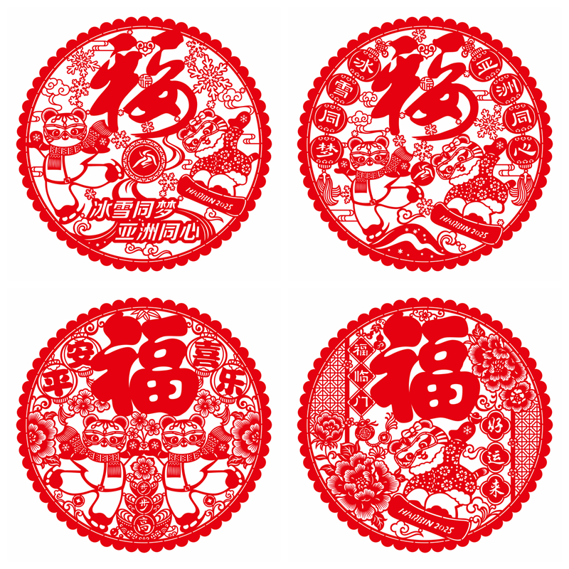 葛涛告诉新华网,亚冬会不久后将要召开,今年在他的剪纸作品中除了“金蛇纳福”“蛇年大吉”“富贵平安”等内容外,他还创作了一系列亚冬会元素的剪纸,比如在传统的福字、花朵等元素外,增加了亚冬会的吉祥物——滨滨妮妮造型,还有亚冬会会徽、口号,并有雪花、祥云等元素,这些特定的形象符号采用“花中有花”的手法,充分展现剪纸艺术的文化内涵和独特美感。