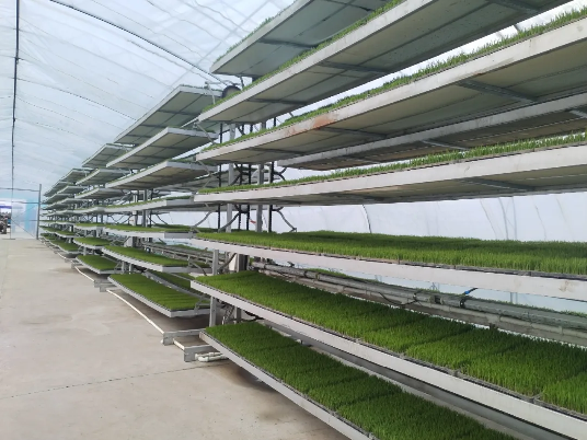 连日来,在北大荒农业股份八五九分公司的超级大棚内,7台立体育秧架上的秧苗随着链条的转动均匀地接受阳光的滋养,长势喜人。今年,这个分公司新引进水肥一体化智能灌溉机器,推动立体育秧技术发展再上新台阶。