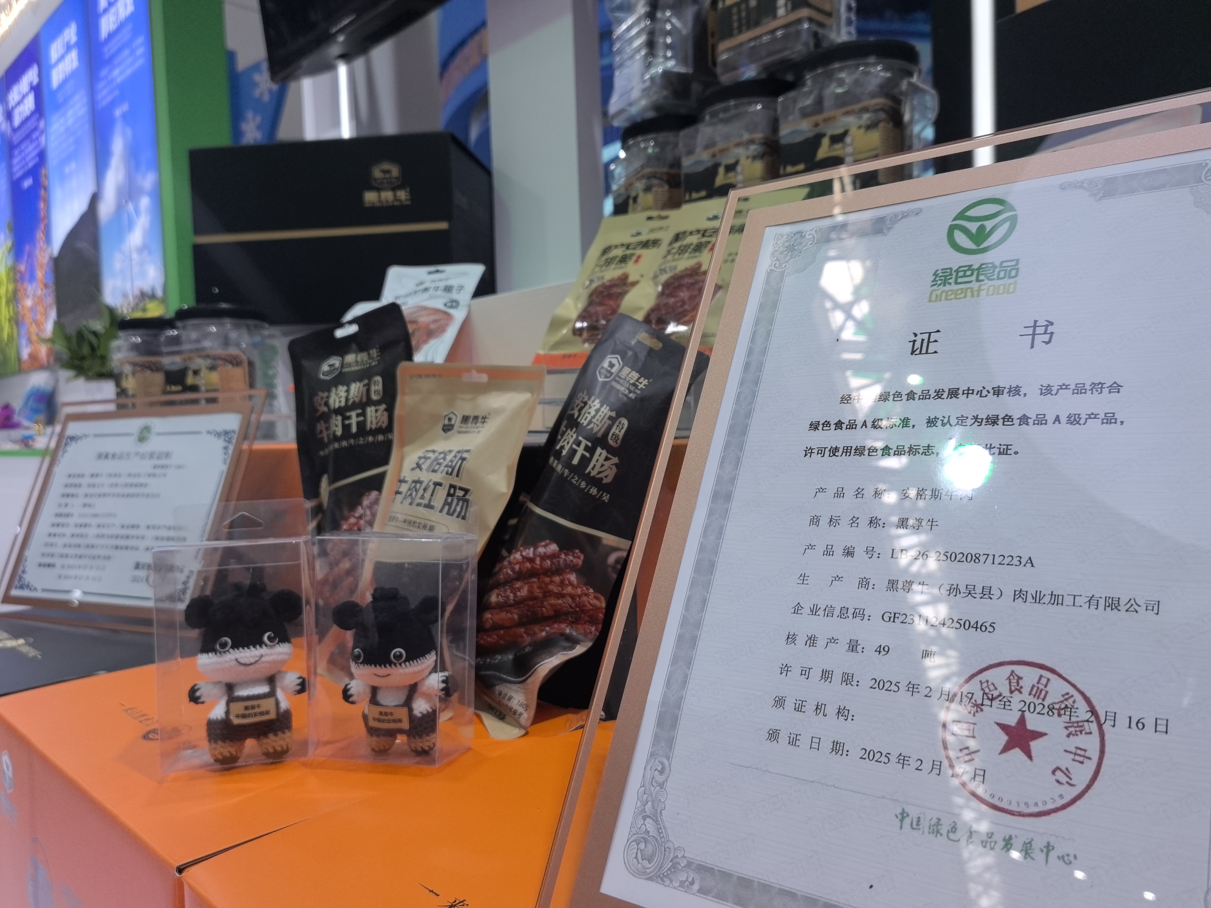 黑尊牛(孙吴县)肉业有限公司生产的安格斯牛肉系列产品成功通过中国绿色食品发展中心认证,获得绿色食品标志使用权,成为黑龙江省第一家获得授权的安格斯高端肉牛企业,填补了我省绿色食品牛肉产品空白,“黑尊牛”将成为中国安格斯肉牛第一品牌。孙吴安格斯肉牛产业仅历时2年,就实现了“从牧场到餐桌”的蝶变,初步形成了“饲料种植、种牛繁育、高端育肥、屠宰加工、食品销售、餐饮营销”的全产业链发展格局。