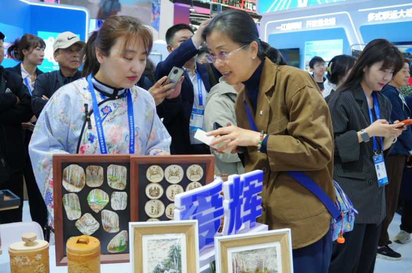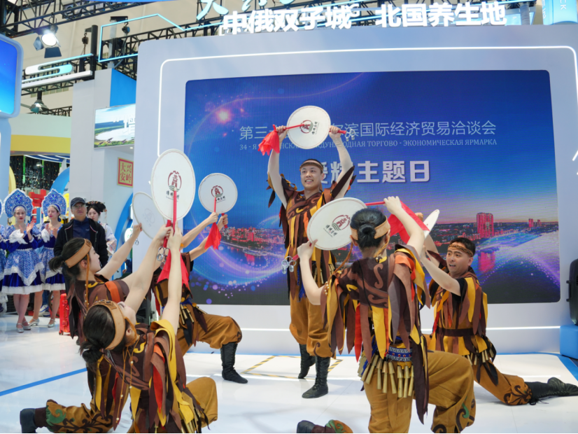 爱辉区以“生态之城”“开放之城”“创新之城”三张名片惊艳亮相,展示了白桦汁、冷水鱼等特色产品,以及鄂伦春族舞蹈、满族铃鼓舞、非遗技艺、中俄歌舞等多元文化,吸引众多参展商和参观者驻足。