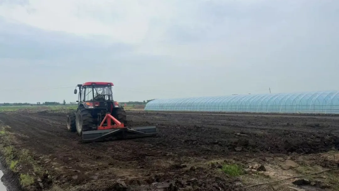 近日,在第六管理区育秧大棚基地,种植户田军正在进行平地作业,为下一步建设超级大棚做好准备。升级改造后的超级育秧大棚能够有效提高作业效率。“原来的大棚,是60米的小棚,底下都烂了,基本上用不了了。看邻居用的是超级大棚,在今年规划的时候,我们也建了超级大棚。”第六管理区种植户田军说道。