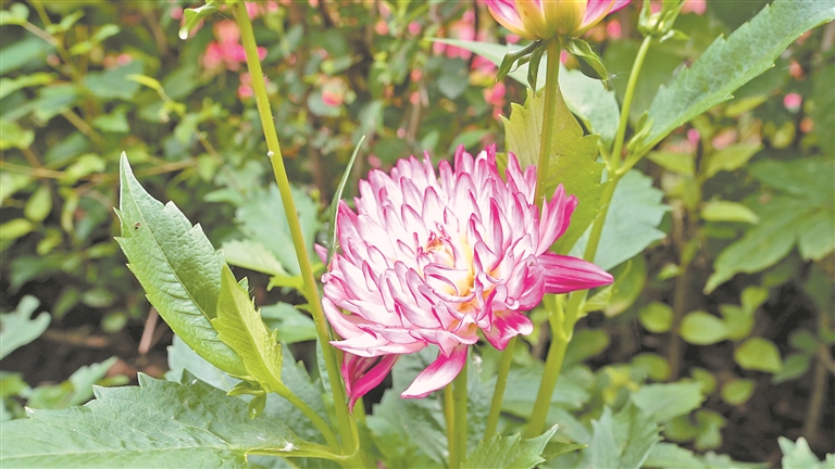 走入百花园,各色花朵争奇斗艳,游人的相机快门声此起彼伏。“这是鼠尾草,这是木绣球,这是三色堇……这边是白粉色为主的搭配设计,这边则是蓝色调紫色调的搭配。”商凤杰向记者介绍着百花园里的各类花朵,以及颇有讲究的花卉园艺景观搭配设计。