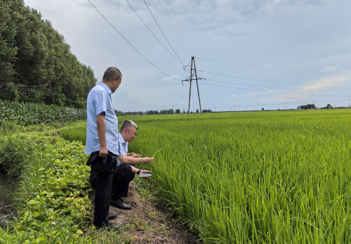 建设银行巴彦支行工作人员深入巴彦县松花江乡五一村查看水稻长势