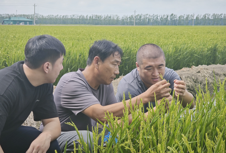 “这株水稻的叶尖出现褐色斑块,不是缺肥的原因,而是近期高温高湿导致的结果。”在北大荒农业股份七星分公司第十六管理区示范田里,由农业技术员组成的“传艺师”队伍正在和种植户们观察水稻生长变化。