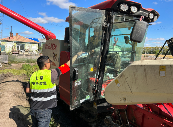 为有效预防和减少安全生产事故,确保秋收工作顺利推进,北大荒集团七星农场有限公司近期组织安全员深入田间地头,对秋收作业机械开展安全隐患排查,多措并举织密安全生产“防护网”。