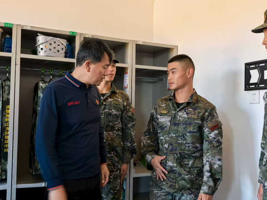 在慰问集贤县消防救援大队、武警双鸭山支队机动中队时,寇立国了解战士们的生活情况,并送上图书、衣服和生活用品。