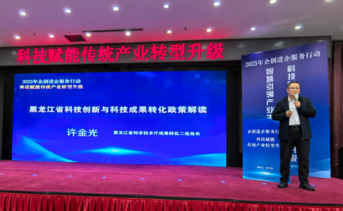 黑龙江省科学技术厅成果转化二处处长许金光作《黑龙江省科技创新与科技成果转化政策解读》特邀报告,全面、系统地解读黑龙江省科技成果转化政策,为相关单位准确把握政策导向、充分利用政策红利提供了有力的支持与精准的指导。