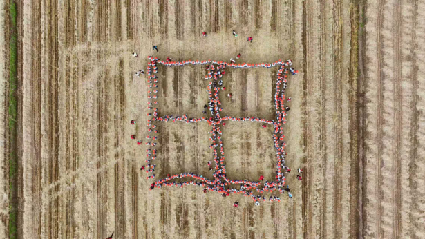 活动中,“稻田知辛”环节让参与者深刻体会劳动价值。在金色稻田里,大家弯腰拾取机械收割后遗落的麦穗,稻秆、碎叶与稻穗颜色相近,搜寻难度不小,半个多小时后,参与者的布袋渐鼓,额头渗汗却笑容不减。亲子间的交流与分享,让“珍惜粮食”的理念悄然扎根,随后组成的“田”字造型,更成为田野间生动的“大地课堂”。