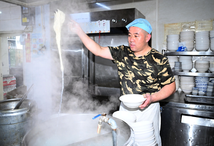 捞面(央广网发 齐蕊 摄)