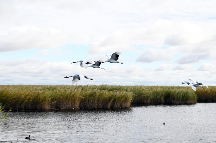 扎龙生态旅游区仙鹤起舞(央广网记者陈显春 摄)