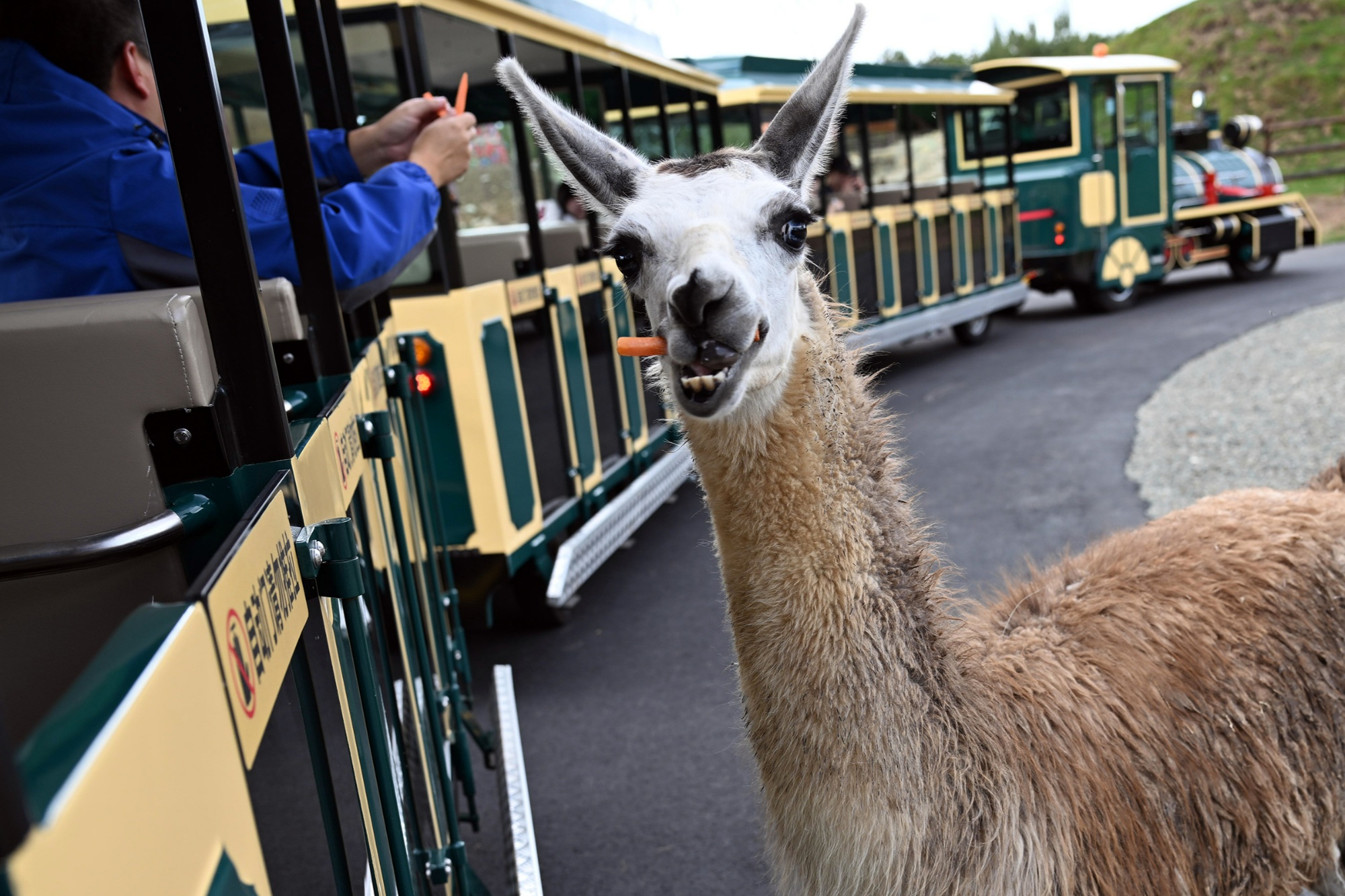 坐上“穿梭动物城”互动观光小火车,在穿越“孔雀园”“尖叫谷”“世界屋脊”“飞檐走壁”“撒丁岛”“青青草原”“沙漠之舟”七大主题区域的过程中,可以近距离接触野生动物,投喂拍照,充满乐趣。