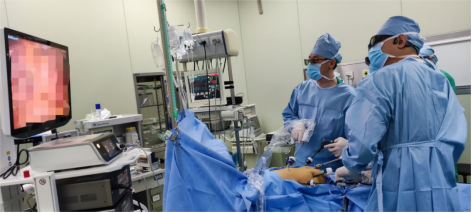 手术当日,高峰教授、李强教授带领团队实施腹腔镜下胃癌及结肠癌扩大根治术。凭借娴熟的腹腔镜技术与解剖经验,团队在密闭腹腔内完成胃肿瘤、结肠肿瘤的根治性切除,同时完成消化道重建——整个手术仅用时2小时,术中出血量不足20毫升。