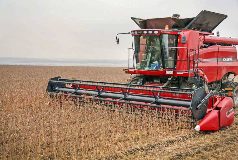 在迎春局公司的黑土地上,收割机轰鸣奏响丰收序曲,一幅“颗粒归仓、产销畅通”的丰收画卷在林区大地徐徐展开。光明农场的最后一批黄豆通过凯斯收割机完成脱粒,金灿灿的豆粒源源不断涌入运粮车送往粮仓与晒场。