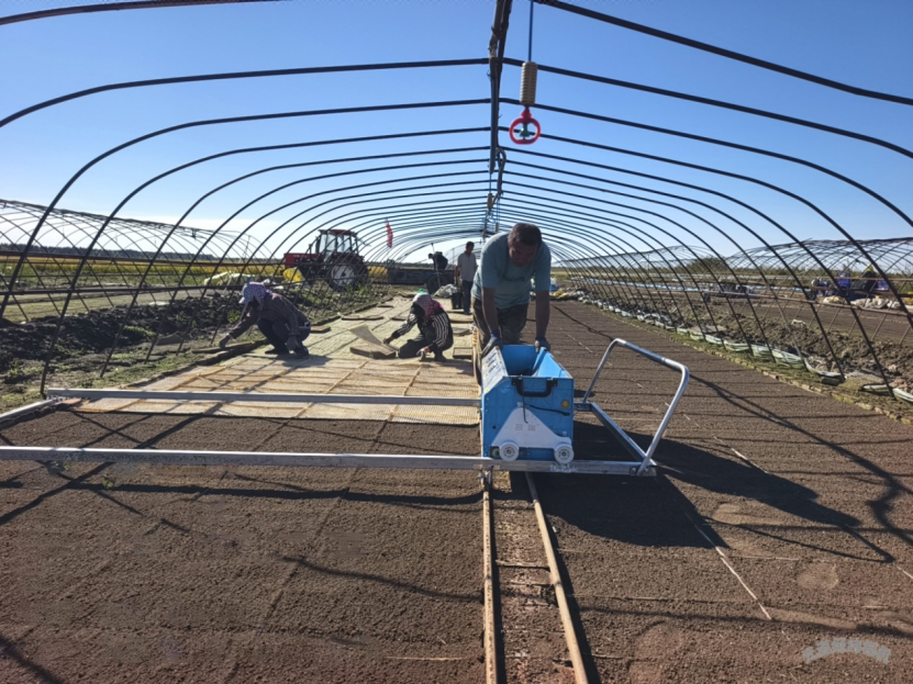在农场第九管理区育秧基地内,种植户们本着早部署、早谋划、早准备、早落实的方针,采取人工摆盘+电动覆土的方式,正有条不紊地进行着秋摆盘作业。同时,能有效避开春季农忙时节的紧张工期,为明年水稻育秧争取更多时间和主动权。