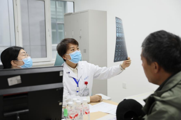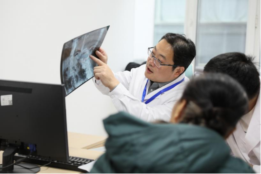 哈医大二院骨科主任医师刘晓奇为患者阅片