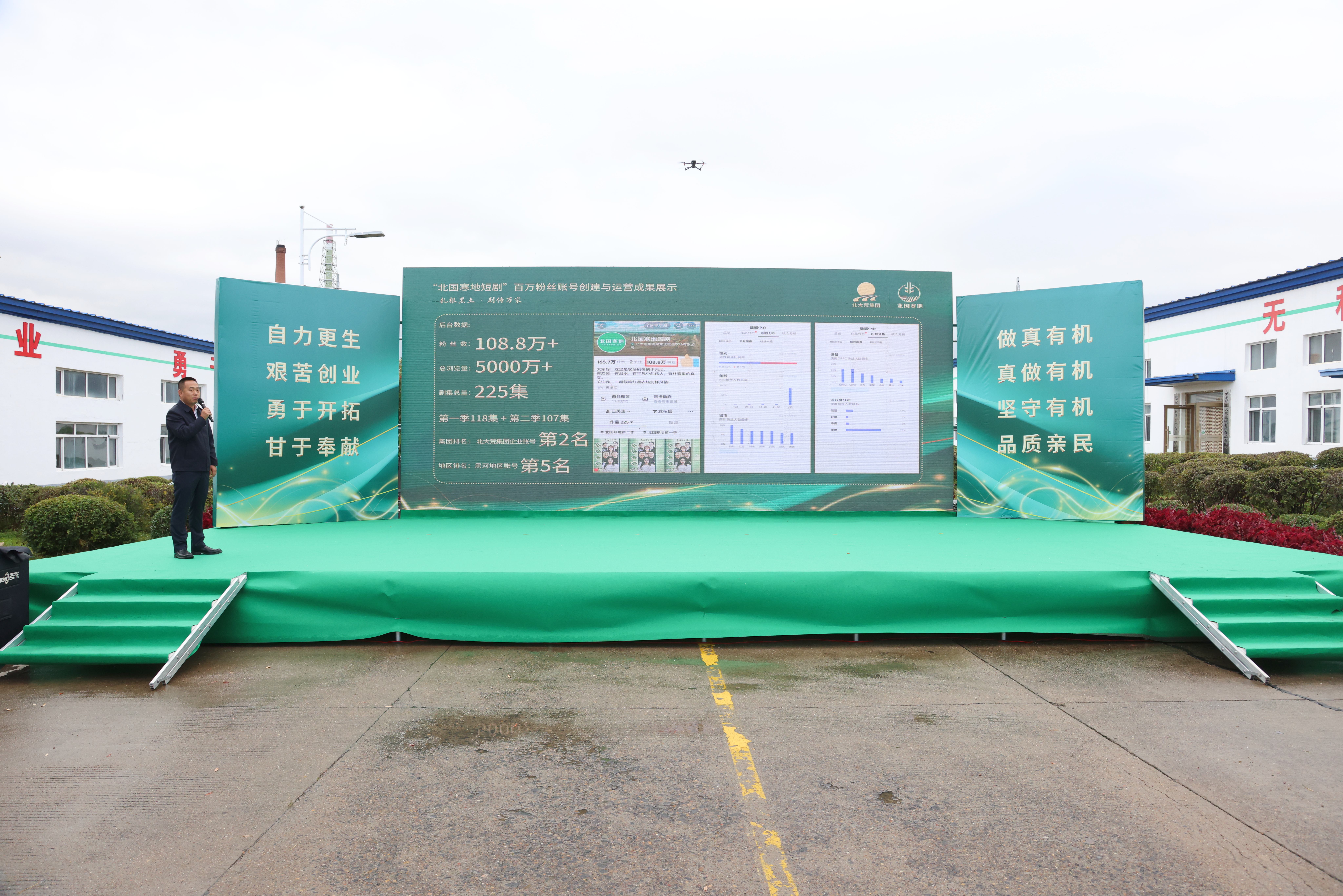 “几口大铁锅里炖着热气腾腾的五花肉酸菜,空气中弥漫着浓郁的东北菜风味;用本地甜菜制作的玫红色饮品清甜温热,成为现场人手一杯的‘抢手货’……”活动现场同步开展了产品试吃与电商直播活动,来自各地的网红主播纷纷架起设备进行直播带货,实现线下品尝与线上销售完美融合。特别是抖音平台的“北大荒”“亲民食品”等5个账号以及快手平台的“索老胖”“棉花糖”等3个账号,共同组成了直播矩阵,全景式呈现丰收盛况与产品优势,全方位展示分公司的优质农产品品质与品牌形象,为营销升级注入了强劲动力。