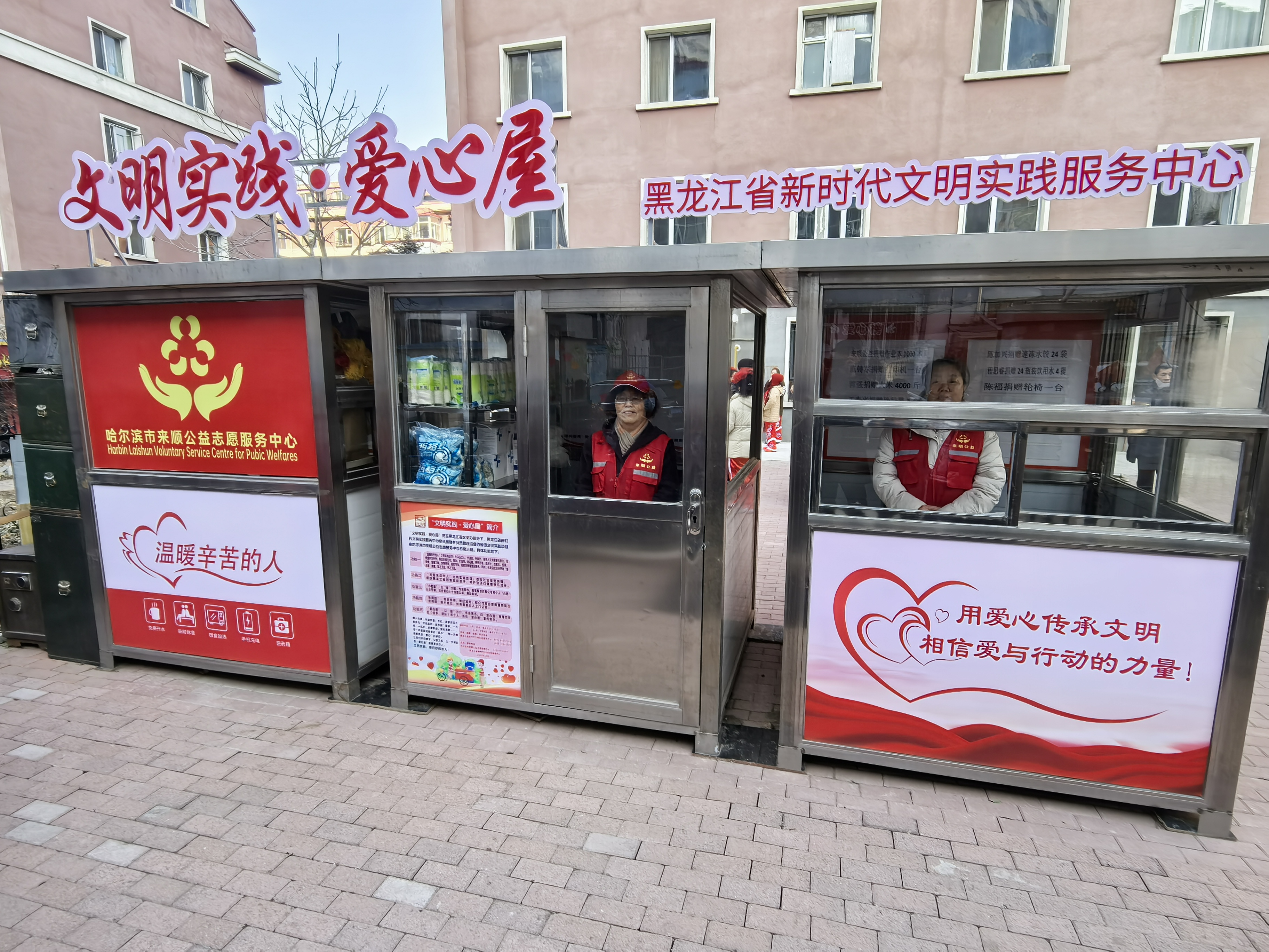 这两所“文明实践·爱心屋”是由黑龙江省新时代文明实践服务中心负责指导、监督,哈尔滨市来顺公益志愿服务中心负责日常服务的公益服务设施。“文明实践·爱心屋”整合社会捐赠资源,重点开展三大服务:一是“温暖辛苦的人”项目,为环卫工人、快递员、外卖员、残疾人及有需要的群众,免费提供热水、手机充电、雨伞、针线包、老花镜、便民药箱、血压计、血氧仪、担架、轮椅、维修工具、失物招领、行李寄存、临时休息等便民服务;炎热夏季,还将开展“清凉一夏”活动,为有需要的群众免费赠送冷饮;二是“关爱未成年人”项目,精准帮扶困难家庭孩子;三是搭建“心愿墙”“舍得园”“爱心榜”三大平台,实现求助心愿对接、闲置物品转赠和爱心捐赠展示,让“小阵地”发挥“大作用”。