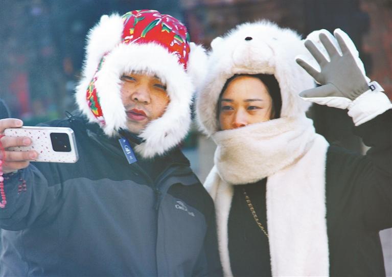 戴卡通棉帽游“尔滨”