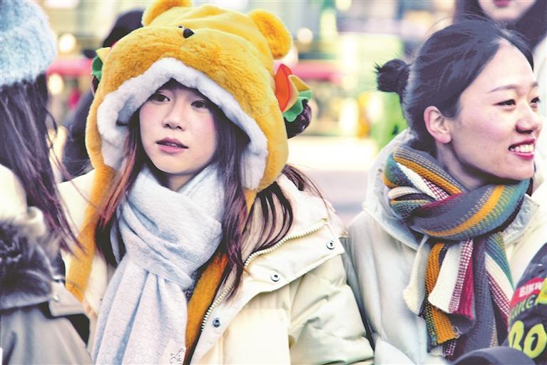 进入冬季,哈尔滨市气温持续下降,外地游客的数量却在不断增多。在道里区尚志大街附近的一处摊点,多位游客在购买棉帽。包括熊猫、小狗、小鹿等在内的卡通动物造型棉帽受到大家的青睐。(记者 苏强摄)