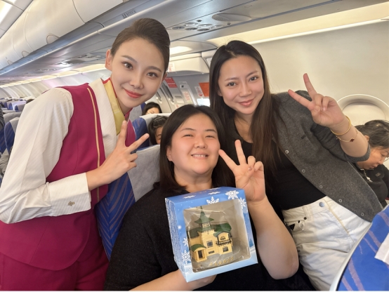 活动全程氛围热烈,旅客纷纷主动与乘务组合影留念,定格高空暖心瞬间。此次主题航班是中国南方航空股份有限公司黑龙江分公司践行真情服务理念的具体实践,乘务组诚挚感谢旅客的选择与信赖,满怀热忱欢送远方朋友,同时热情发出邀约,欢迎全国各地朋友走进哈尔滨,沉浸式感受“冰城”的冰雪风情与龙江人文底蕴。未来,中国南方航空股份有限公司黑龙江分公司将持续深耕客舱服务,创新推出更多优质特色活动,始终以热忱姿态践行服务初心,持续为每一位旅客送上暖心关怀,全力护航旅途。