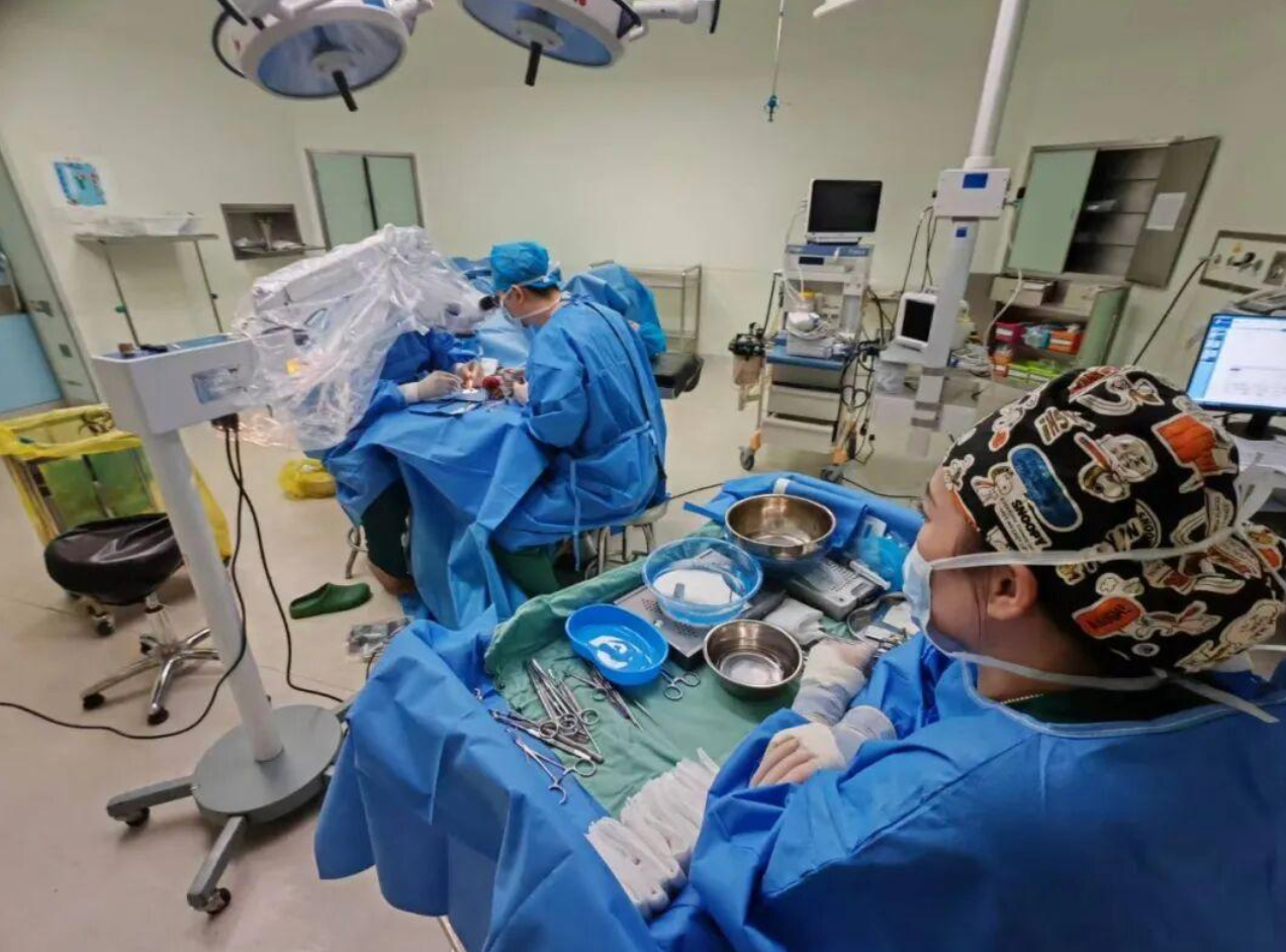手术要想成功,不仅要求术者有精准的显微操作技术,更需要团队的高度默契配合。手术室内,灯光聚焦在手术台上,卢立春带领医生杜志远、孙嘉辉、于景臣在显微镜下,借助特制显微器械,用比头发丝更细的显微缝线,小心翼翼地对离断的血管、神经进行吻合。经过几个小时的精细操作,成功完成左手食指末节完全离断再植手术。