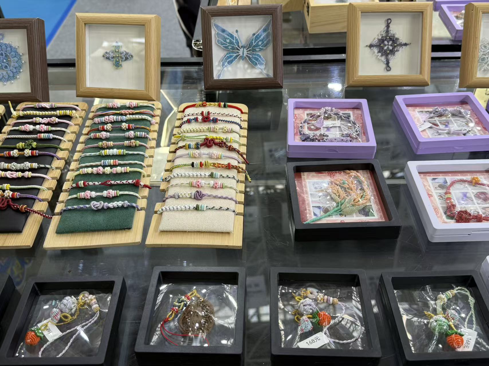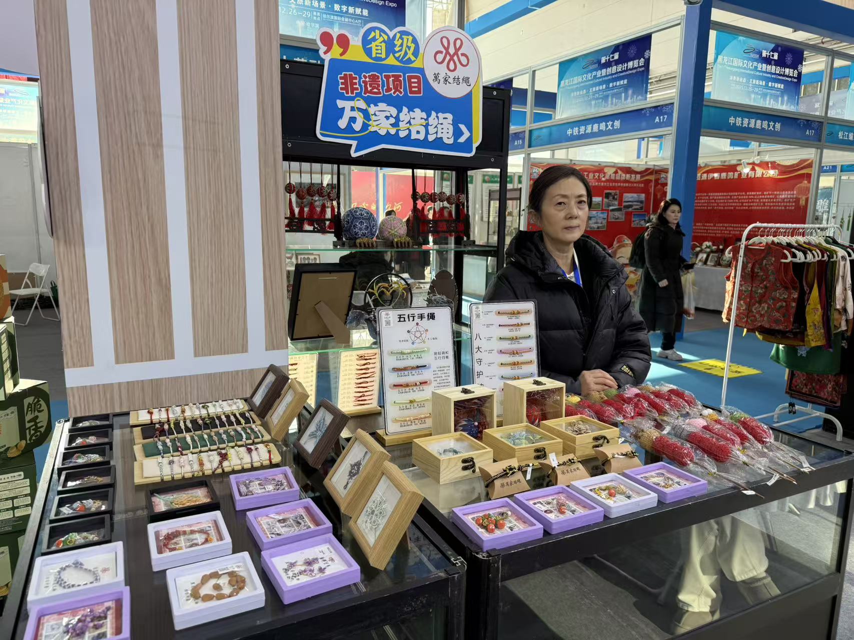 此外,省级非物质文化遗产“万家结绳技艺”也成为展区内的吸睛焦点。据省级非物质文化遗产“万家结绳技艺”第四代传承人万丽说:“在坚守传统技艺的基础上,我们深入挖掘地域文化特色,研发推出了具有牡丹江印记的文创产品体系。”据了解,产品体系涵盖室内软装、传统服装配饰、时尚背包、精美手绳、中式珠宝配绳、汽车内挂饰等六大类产品,通过将古老结绳技艺与现代审美、日常生活需求紧密结合,成功让非遗从“博物馆里的展品”变成“大众身边可用的好物”。