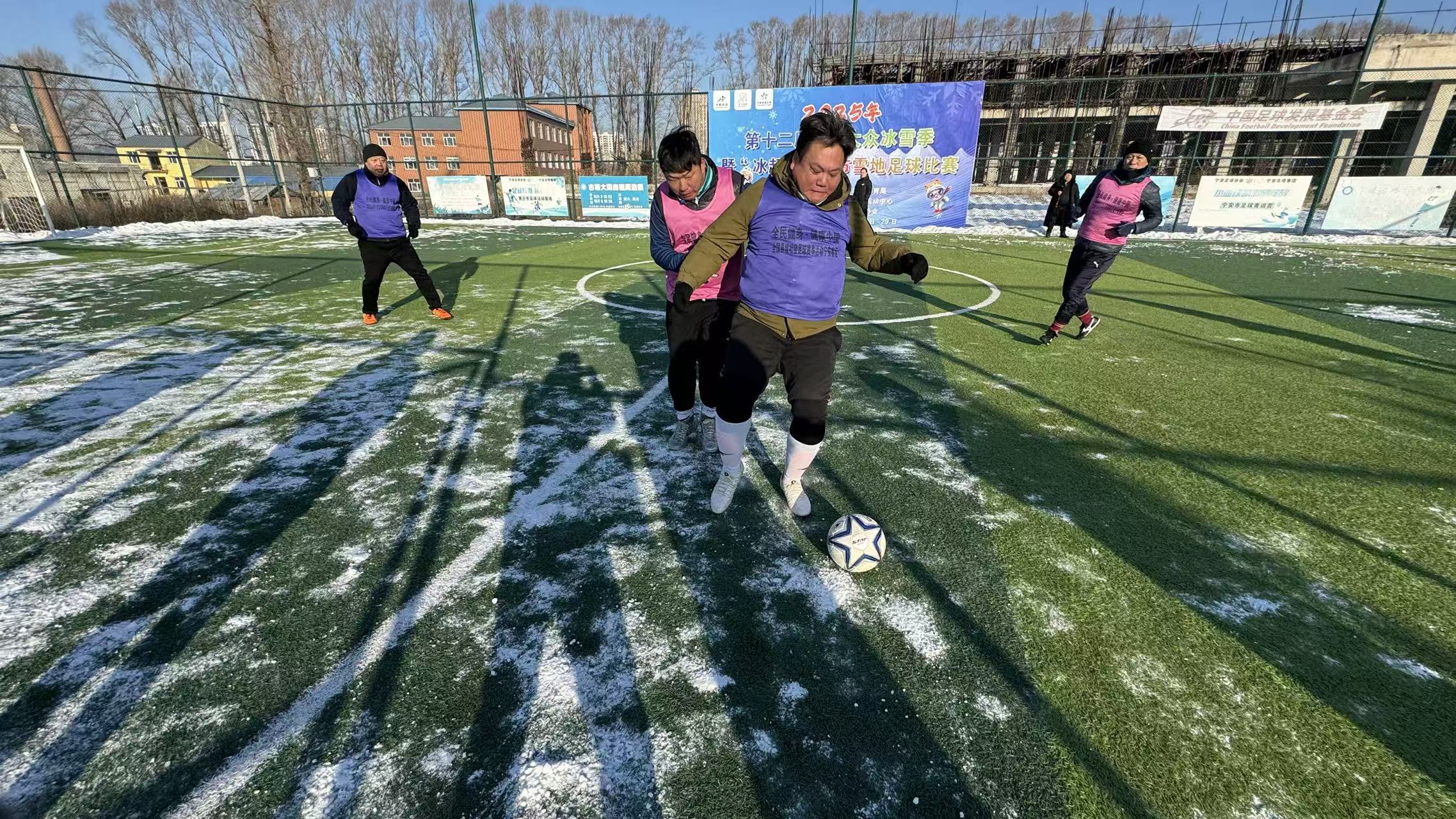 与此同时,宁安市也同步掀起了雪地足球的热潮。近日,“雪超”2025年第十二届全国大众冰雪节启动仪式暨宁安市雪地足球比赛在江南足球运动场激情开赛。活动由宁安市教育体育局主办,吸引了8支队伍、100余名运动员在雪地上奋勇拼搏。赛场上的灵活穿梭、激烈攻防,以及观众热情的助威,共同诠释了冰雪运动的魅力。该赛事是宁安市丰富群众冬季文体生活、推广普及冰雪运动的重要一环,后续还将依托“冰超”平台推出更多冰雪健身项目,让冰雪资源惠及全民。