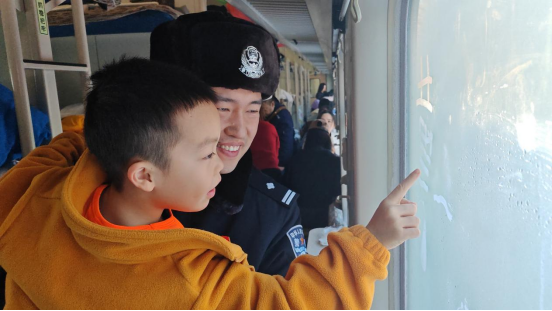 当日,乘警赵威华早早在站台等候研学团,接过师父邵万志的护航接力棒。三年前,邵万志因曾护航研学活动与孩子们结下情谊,此次因工作安排,委托徒弟先行守护。赵威华细心引导孩子们有序登车、安放行李,旅途中化身“临时家长”,反复巡查车厢、叮嘱安全事项,还主动参与列车为孩子们安排的包饺子、穿东北花袄等沉浸式体验活动,全程守护左右。