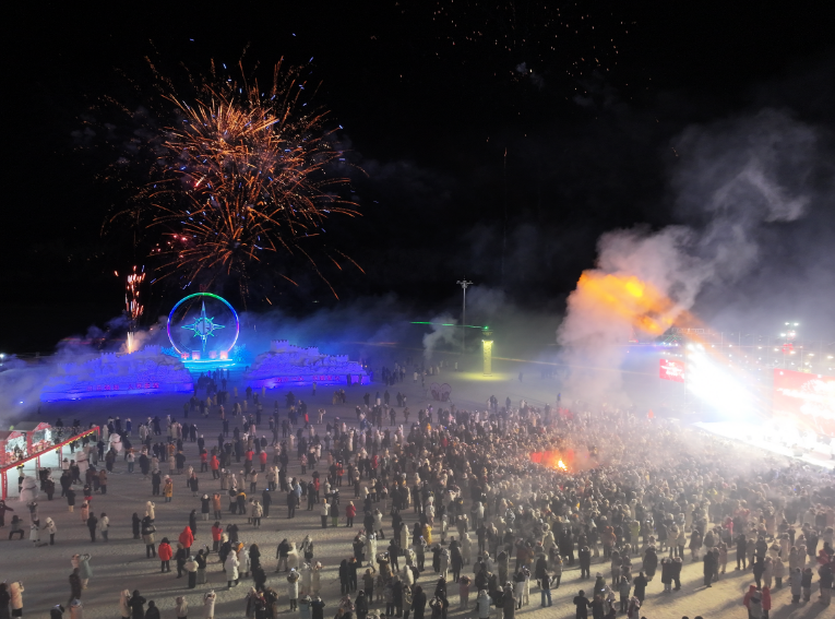 篝火与烟花交相辉映,歌声与笑语温暖交融。2025年12月31日,以“诚邀九州宾 共赴极光宴”为主题的漠河2026年跨年狂欢夜活动在北极村温情启幕。这场融合冰雪风光、东北民俗与现代潮流的沉浸式盛会,吸引数千名游客与居民欢聚一堂,为漠河“冷资源”向“热经济”的转化注入强劲活力。