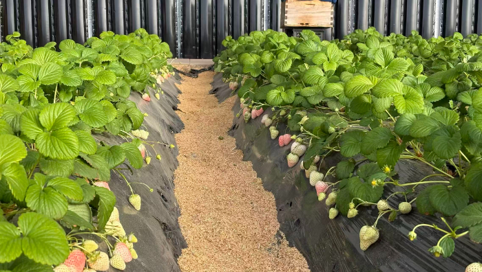 智能温室内,红、白两色草莓挂满枝头,果香浓郁。采用蜜蜂自然授粉且通过零农残检测的草莓,凭借优良品质赢得游客青睐,不少家庭亲子组团体验即摘即尝的乐趣。温室旁设置的品鉴区内,小柿子、黄瓜等当季果蔬也收获大量好评。