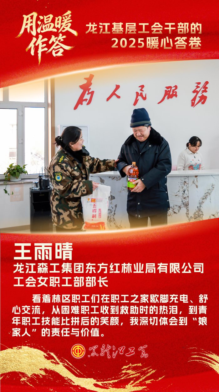 2025年,我最欣慰的是见证了职工之家变身“暖心港湾”。看着林区职工们在职工之家歇脚充电、舒心交流,从困难职工收到救助时的热泪,到青年职工技能比拼后的笑颜,我深切体会到“娘家人”的责任与价值。用心用情办实事,让每一份付出都温暖职工,这便是我们最踏实的答卷。