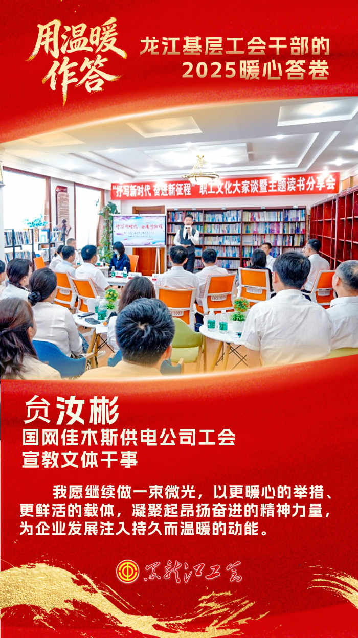 2025年,从升级职工活动中心、擦亮“书香国网”品牌,到让8个文体协会如春花般绽放,我们用一次次精心设计的活动,让三千余人次职工在企业文化的沃土中找到归属与欢乐。我愿继续做一束微光,以更暖心的举措、更鲜活的载体,凝聚起昂扬奋进的精神力量,为企业发展注入持久而温暖的动能。