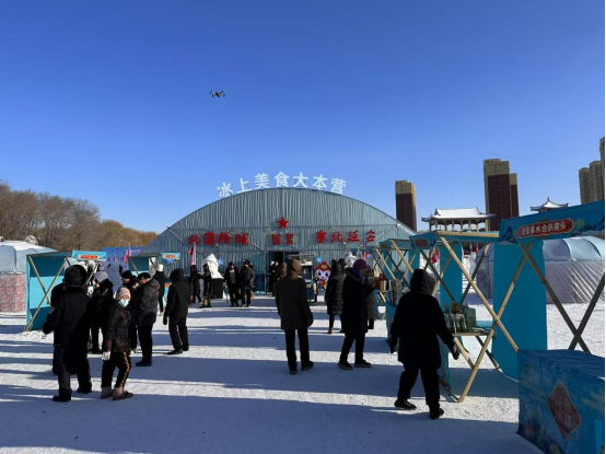 北安市“冰上美食大本营”是区域冬季文旅新地标,凭借“冰雪+美食+体验”的沉浸式定位,迅速集聚超高人气,成为市民游客冬日游玩的热门打卡地,也为分公司搭建起“冰雪+农产”融合营销的优质平台。