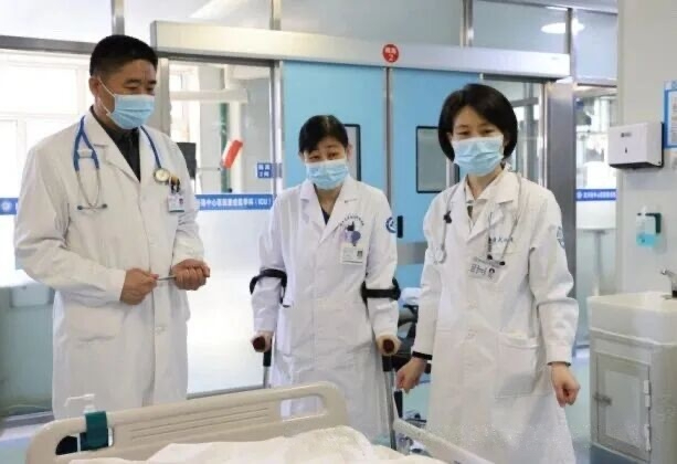 哈医大二院重症医学科主任韩艺(右)与当地医生共同查房