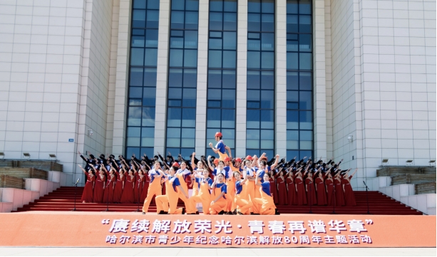 4月26日,“赓续解放荣光·青春再谱华章”哈尔滨市青少年纪念哈尔滨解放80周年主题活动,在哈尔滨市规划馆广场隆重举行。活动由共青团哈尔滨市委、哈尔滨市青年联合会主办,哈尔滨华德学院承办,哈尔滨规划展览馆协办,团市委书记田晏铭、市委史志研究室副主任曾欣等出席活动。哈尔滨华德学院百余名学子承担文艺演出任务,以沉浸式演绎致敬英雄城市,打造了一堂生动的“行走的思政课”。