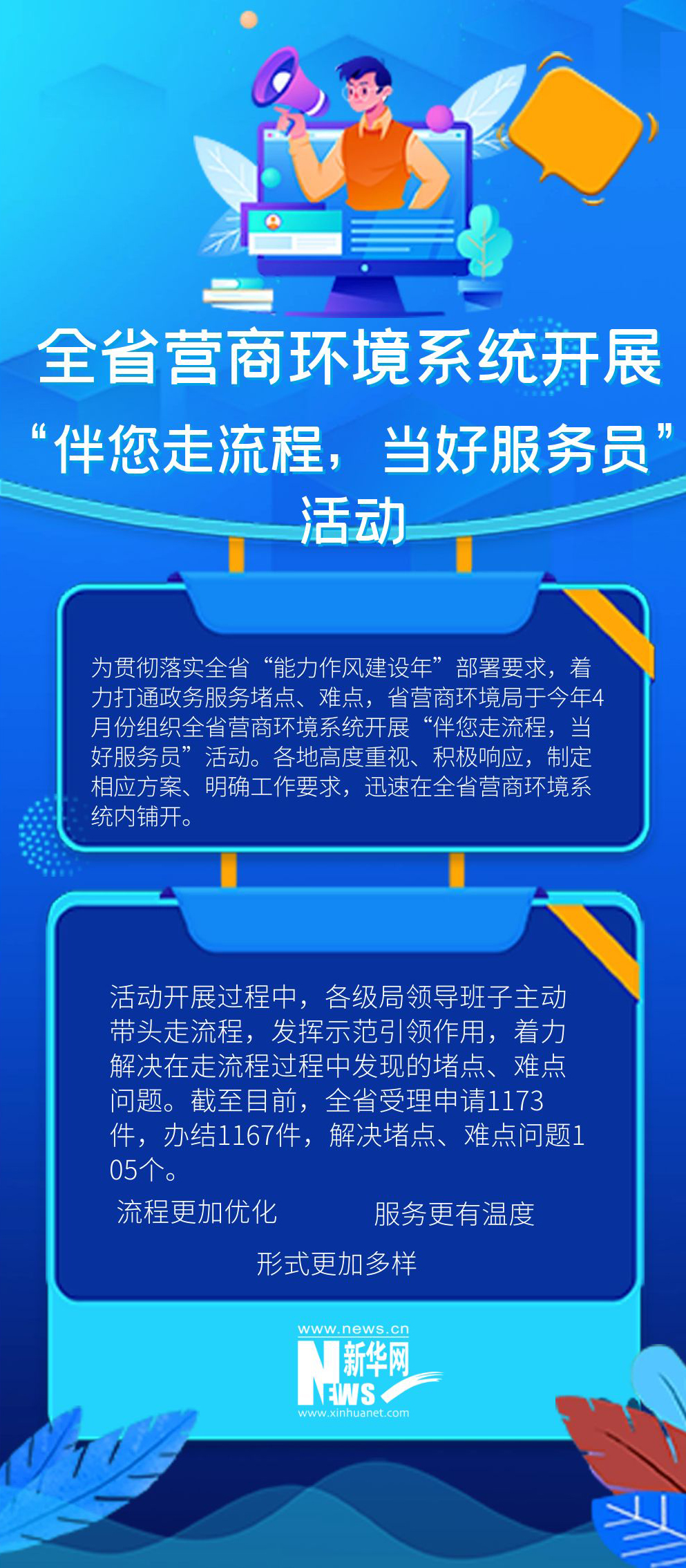 为贯彻落实全省“能力作风建设年”部署要求,着力打通政务服务堵点、难点,黑龙江省营商环境局于2022年4月份组织全省营商环境系统开展“伴您走流程,当好服务员”活动。各地高度重视、积极响应,制定相应方案、明确工作要求,迅速在全省营商环境系统内铺开。