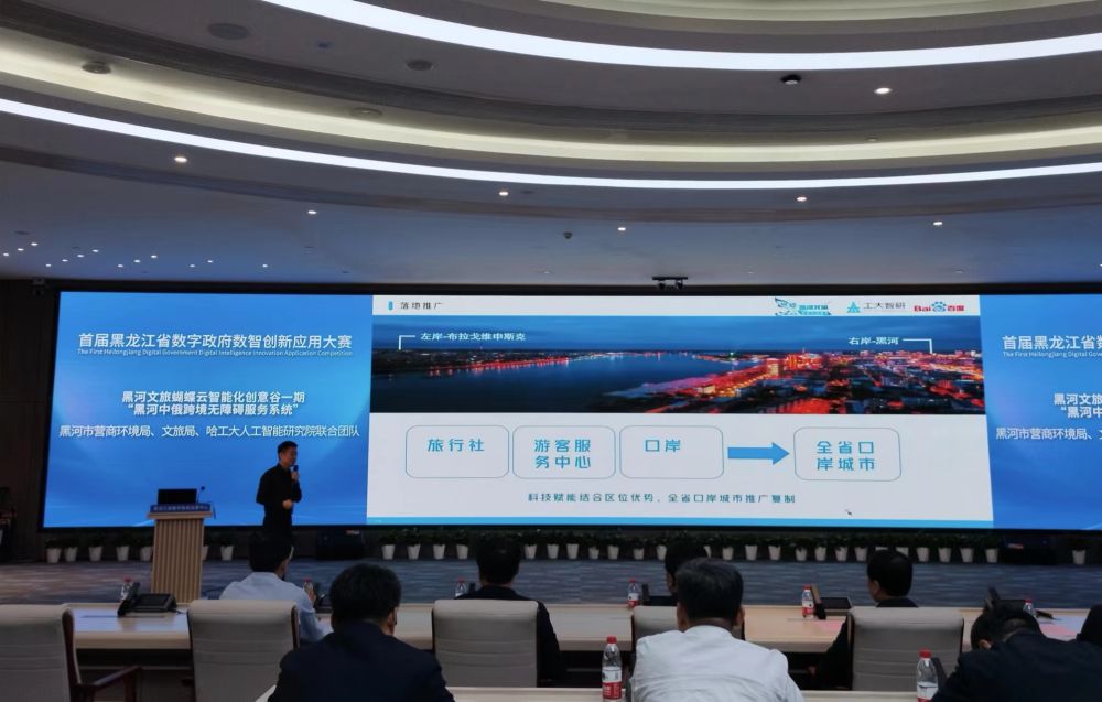 参会领导嘉宾分别为获奖团队颁发“十优案例”奖及“十佳案例”奖,在随后进行的场景展示环节,大庆市营商环境局团队和黑河市营商环境局、文旅局、哈工大人工智能研究院联合团队等多个获奖团队进行了场景展示。